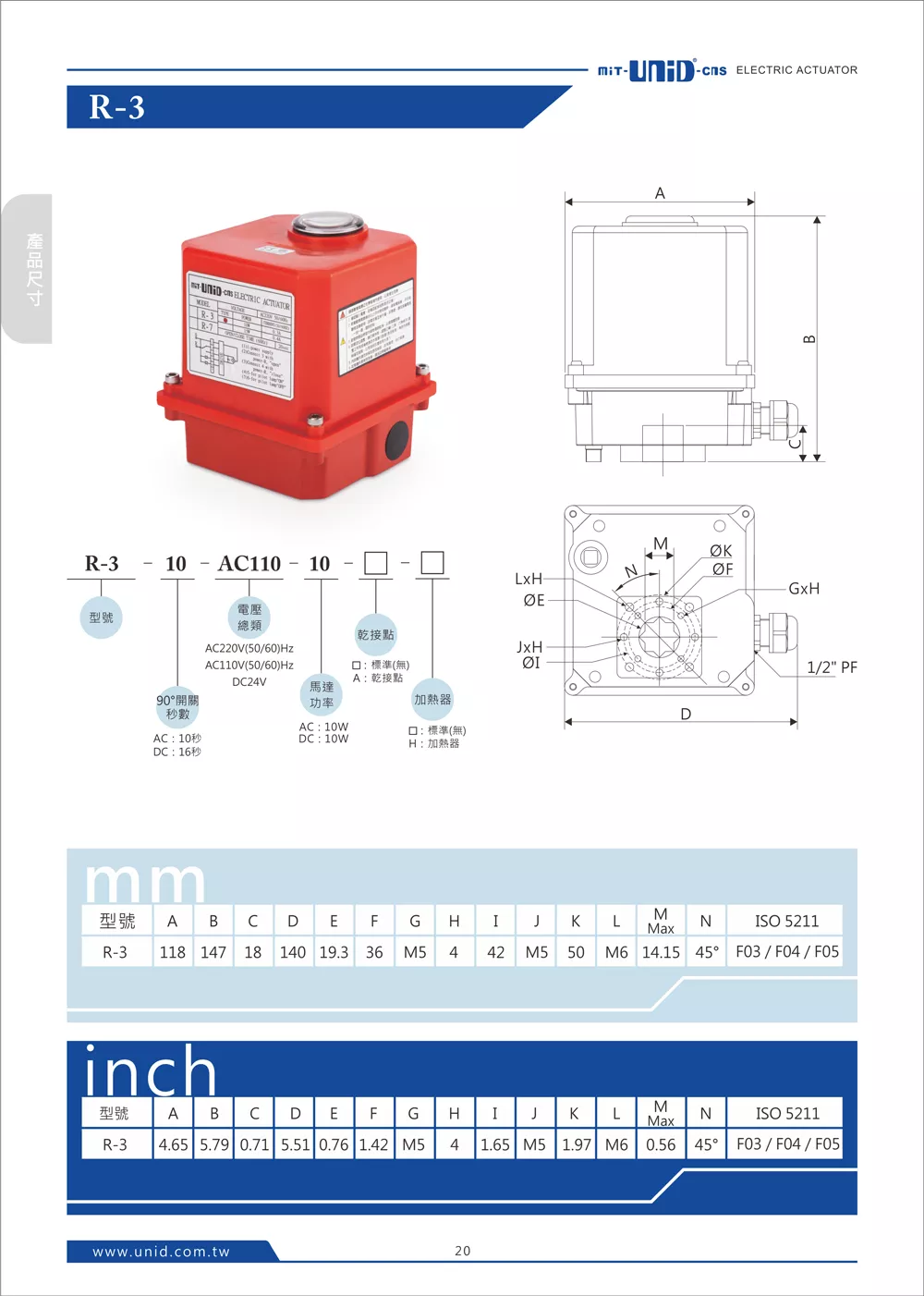 1.7 kg馬達功率8mm開口板手法蘭孔距(ISO 5211)F03/F04/F05